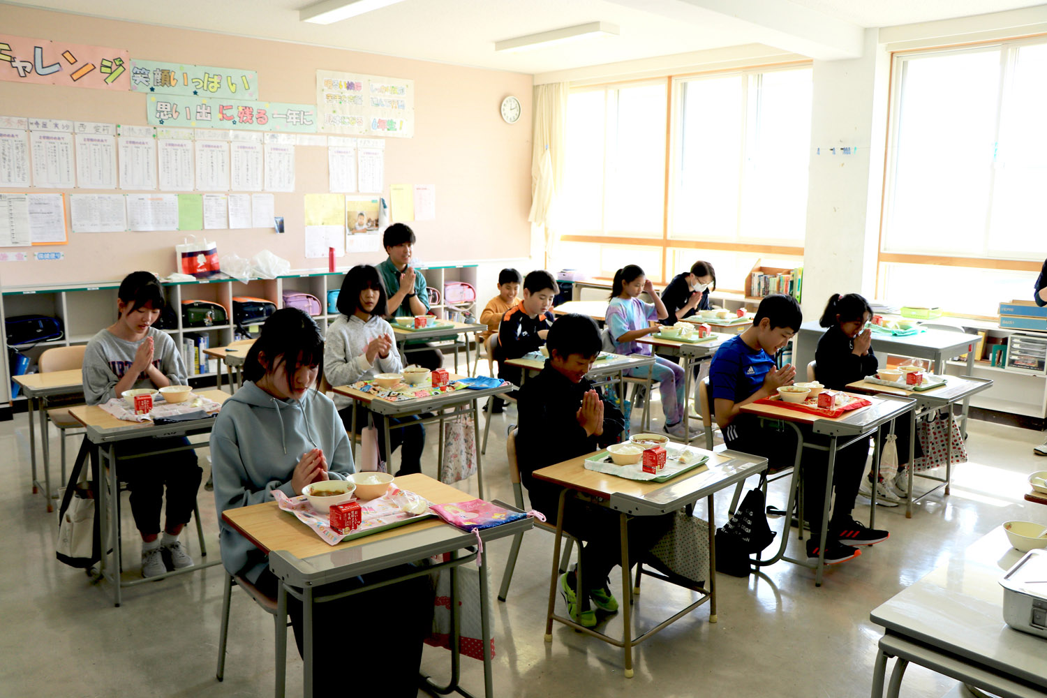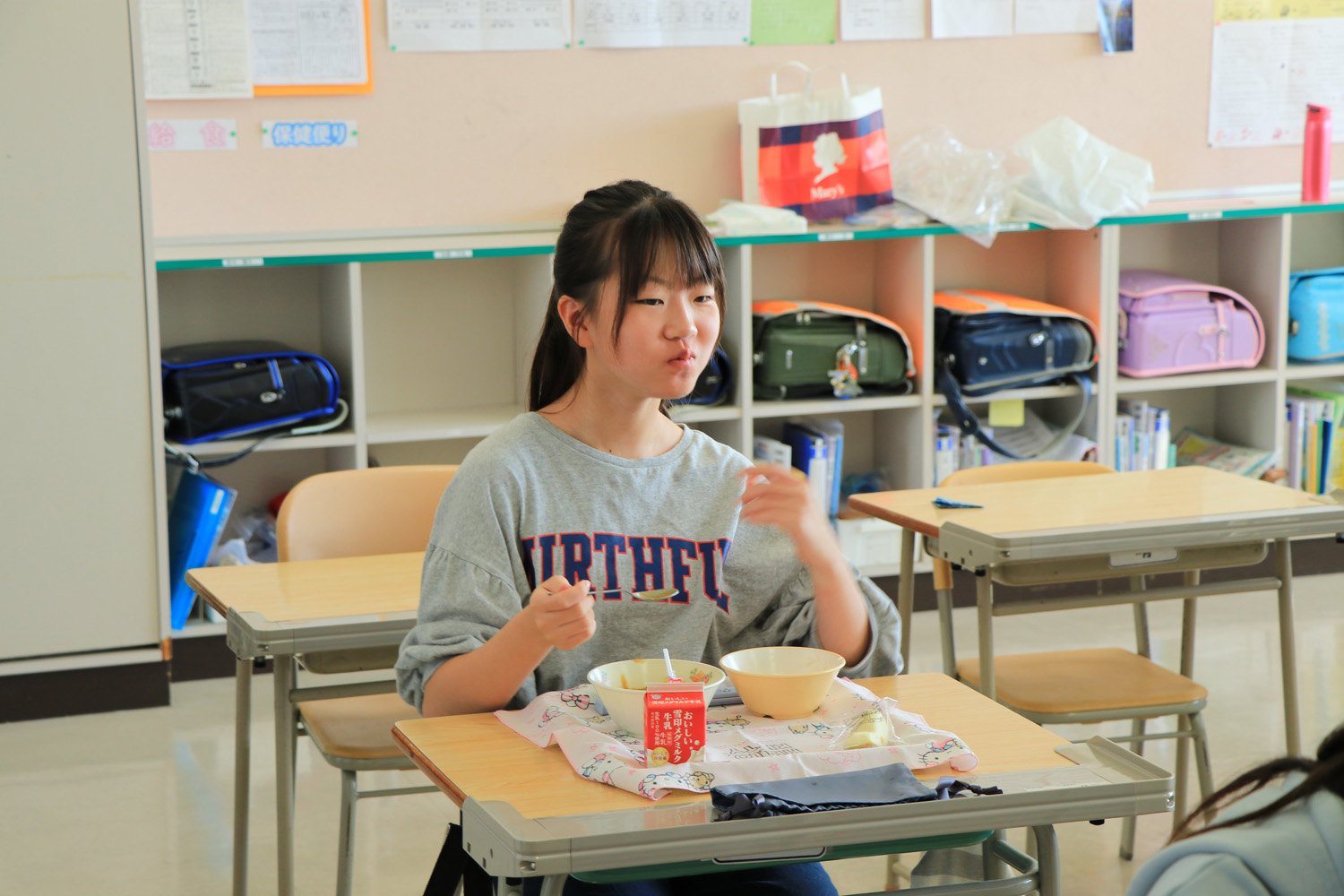 給食を食べ終えた荻伏小6年生の櫛引匠さんは「カレーとても美味しかった。牛肉が柔らかく食べやすかった。次回も和牛のカレーだと嬉しい」と満足気な様子で話していました。