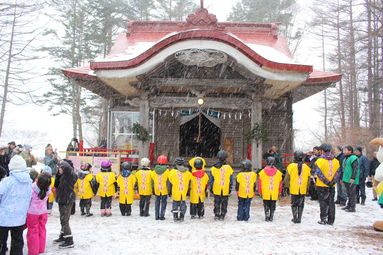 人馬の無病息災を願って「騎馬参拝」
