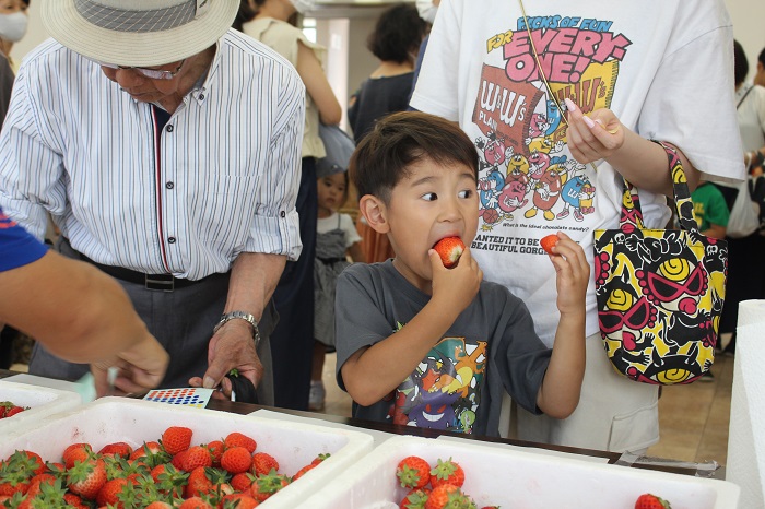 町で栽培が盛んな夏いちごの魅力をより多くの方に知ってもらう「夏いちごの日」イベントが7月15日に、堺町基幹集落センターで開かれました。