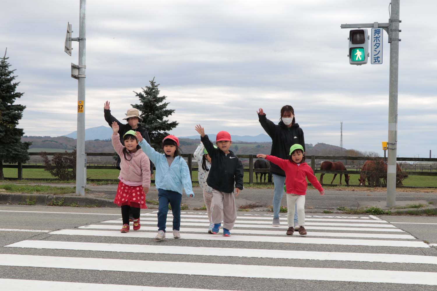 東部保育所の園児が横断歩道の渡り方を学びました