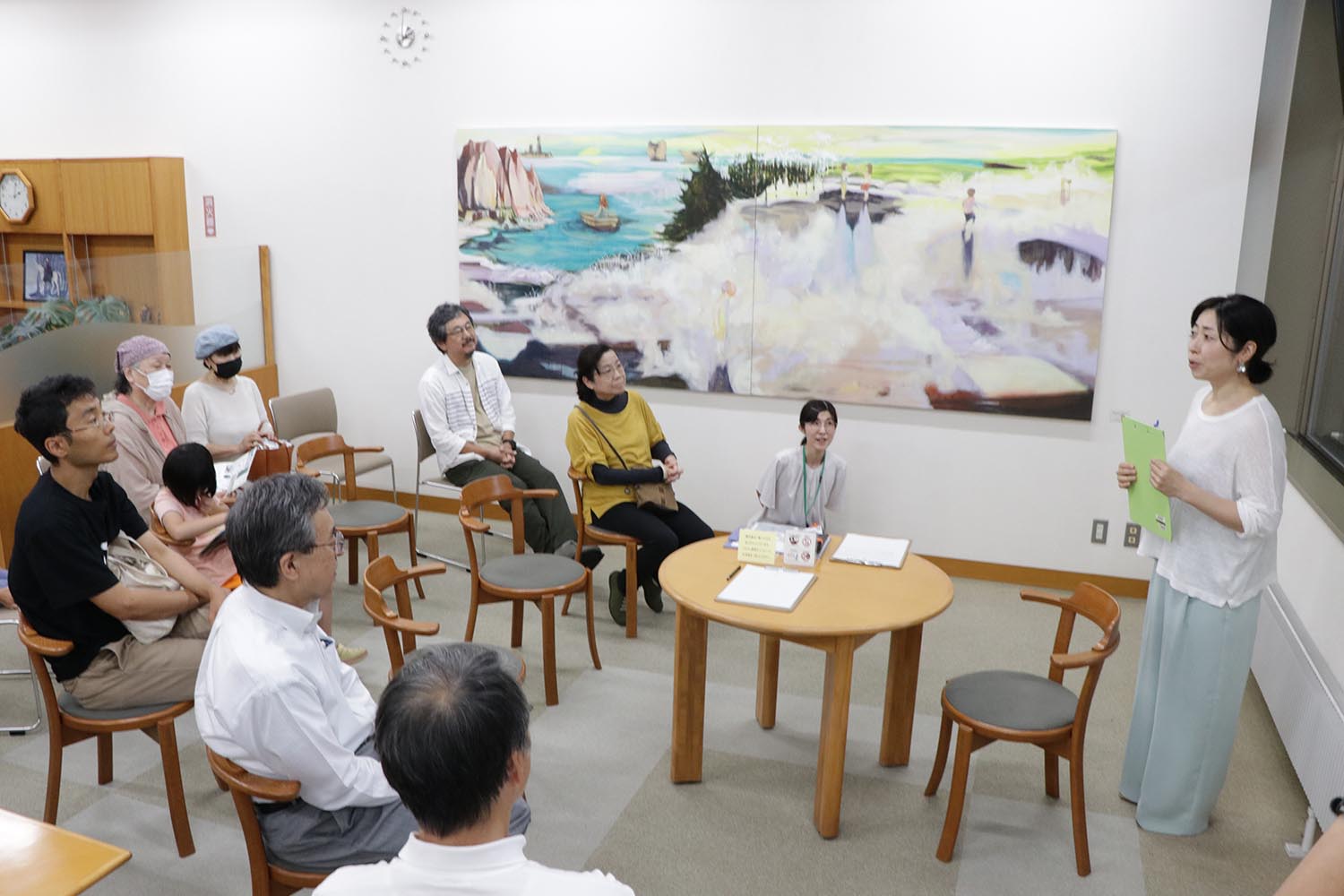 図書館で久野志乃さんが絵画展を開催。ギャラリートークで作品の思いを語る