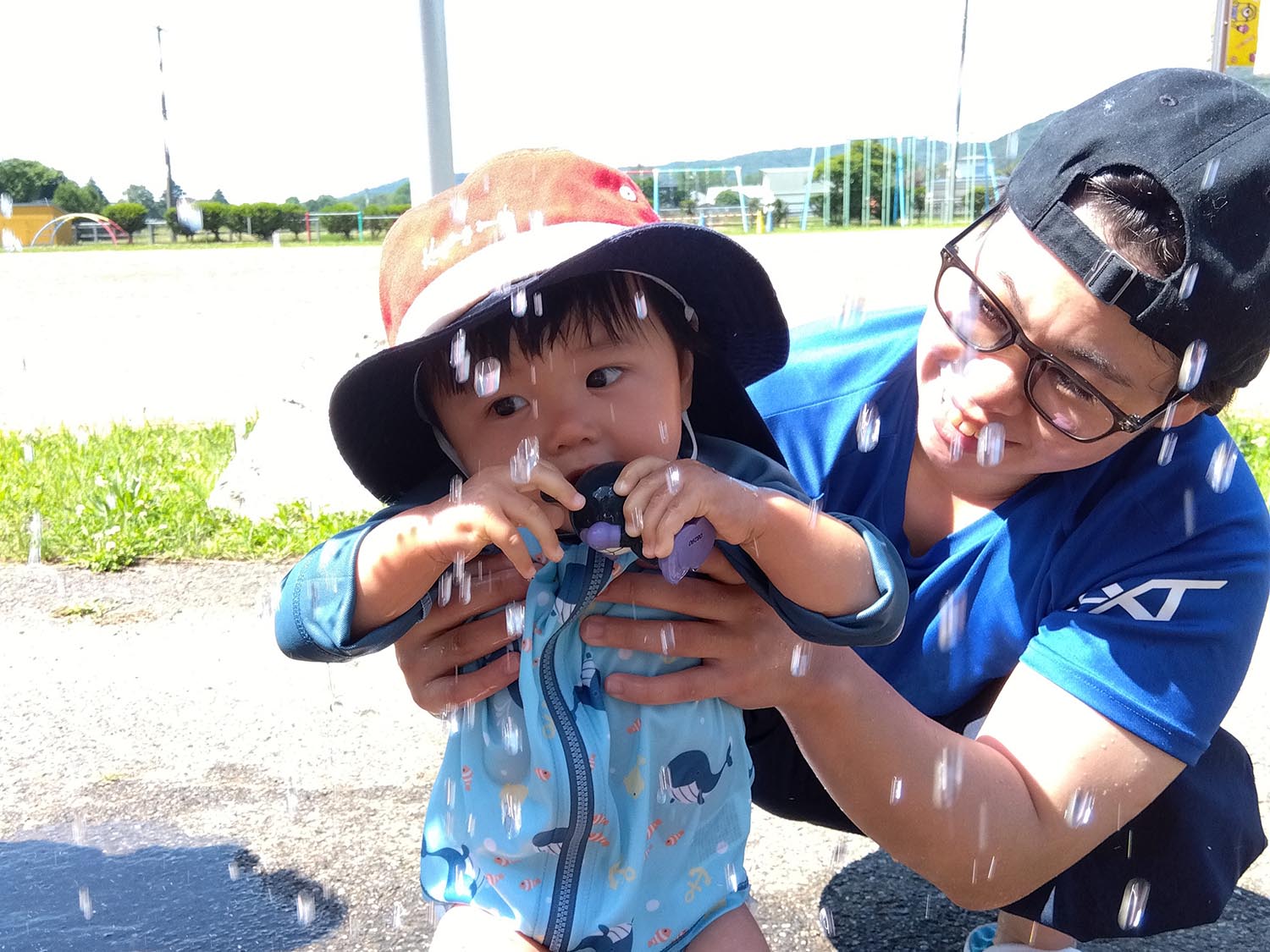 水遊びで大はしゃぎ!荻伏保育所で「あそびの森」